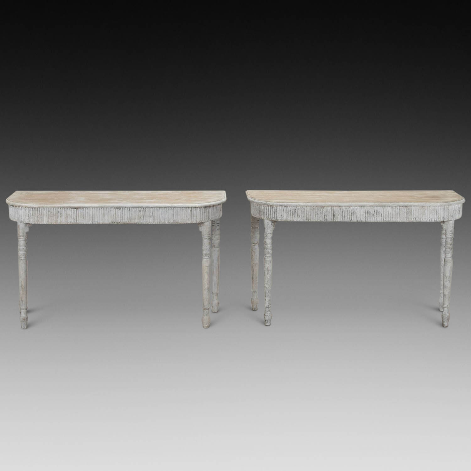 Small Pair of 20th Century English Painted D Shaped Console Tables