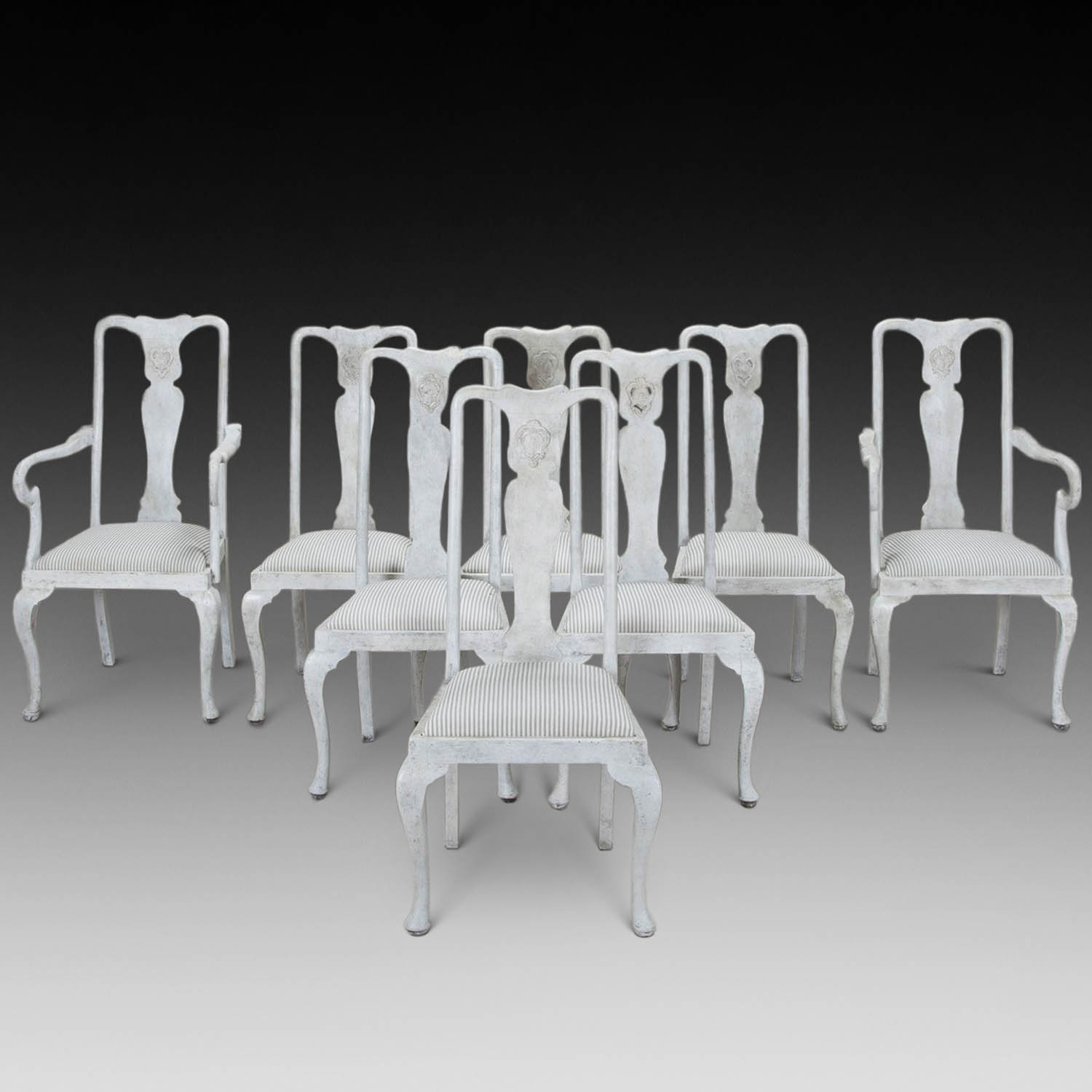 Set of Eight 20th Century Gustavian Style Dining Chairs