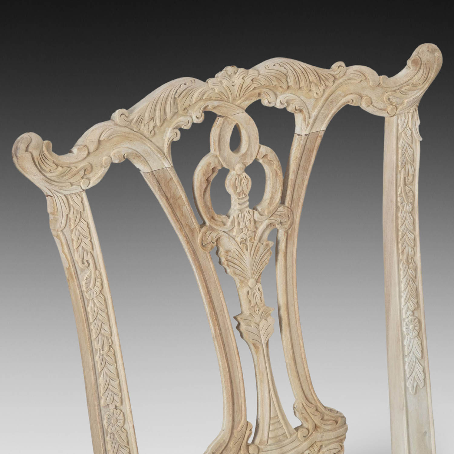 Set of Sixteen 20th Century Bleached Chippendale Style Dining Chairs