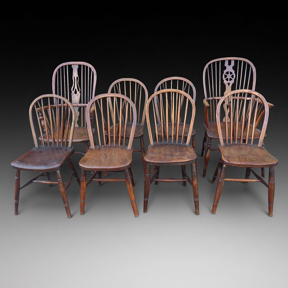 A Good Harlequin Set of Eight Windsor Country Chairs, ca. 1770-1880 (SOLD)
