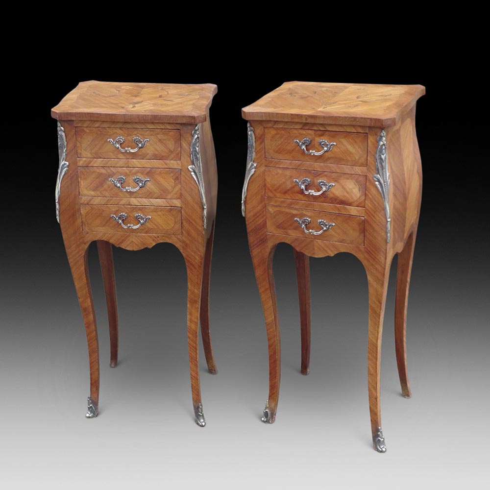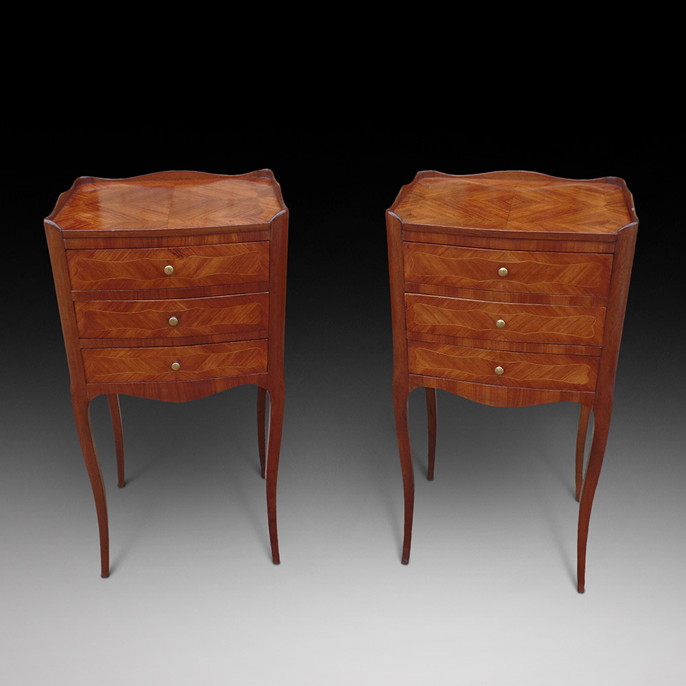 Pair of Kingwood Marquetry Bedside Cabinets, ca. 1890-1900 (SOLD)