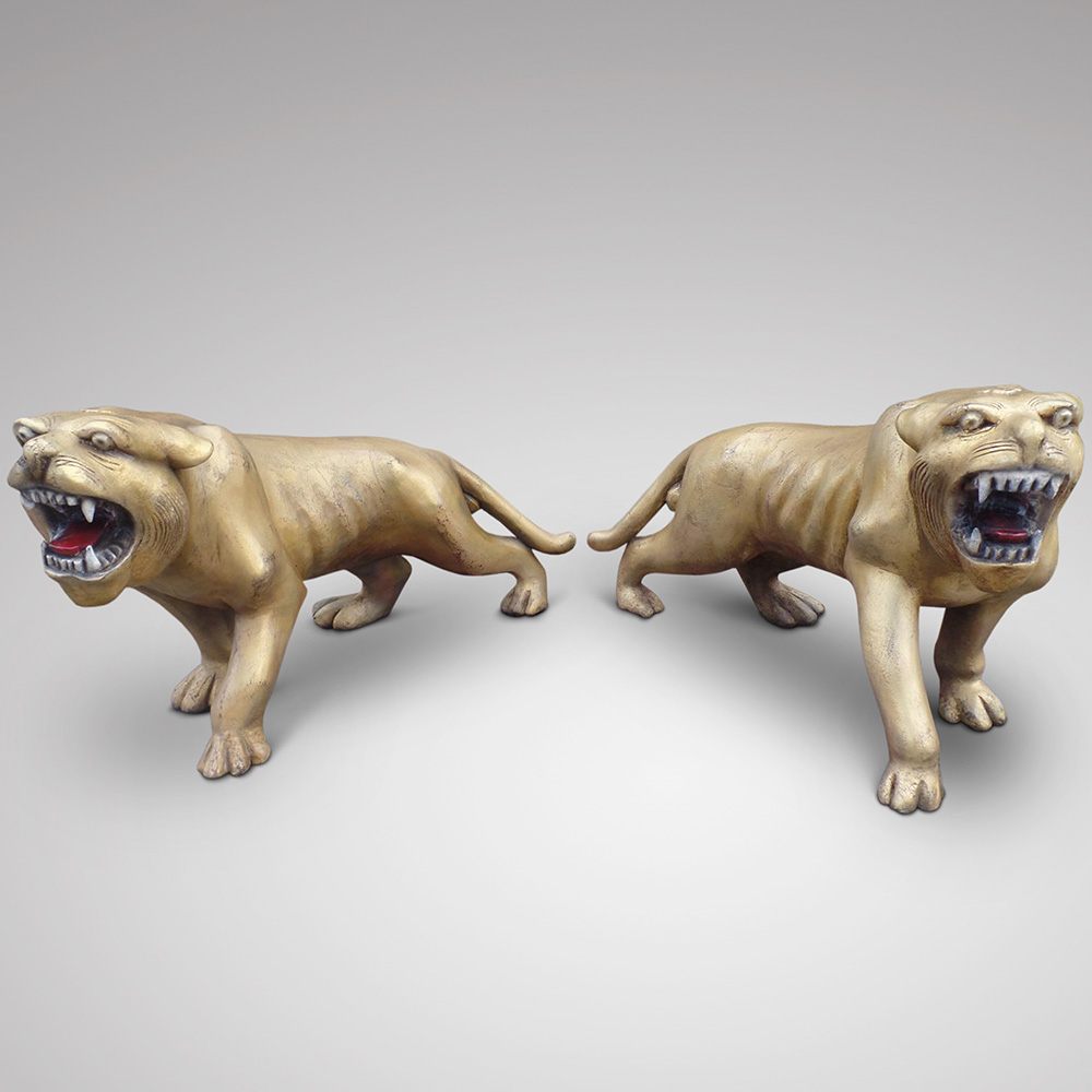 A Very Unusual Pair of Carved Wooden Tigers, ca. 1870-90 (SOLD)