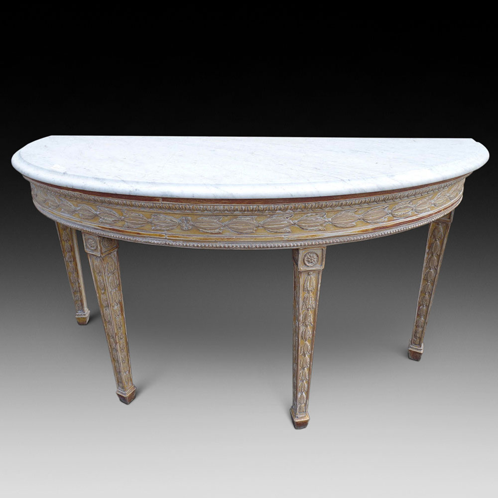Dry Stripped Demi Lune Console Table, ca. 1760-1780 (SOLD)