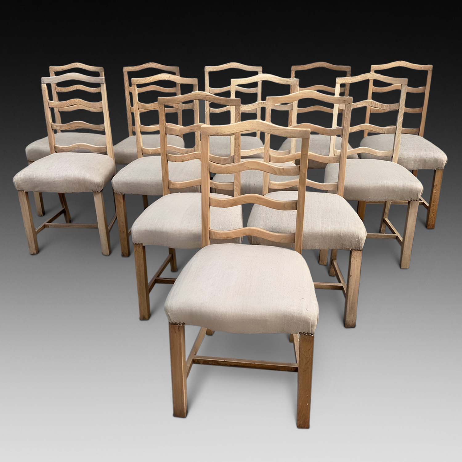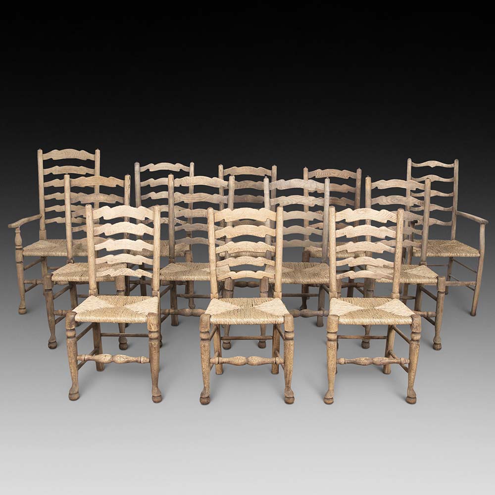 Set of 12 Bleached Oak Ladder Back Dining Chairs (SOLD)