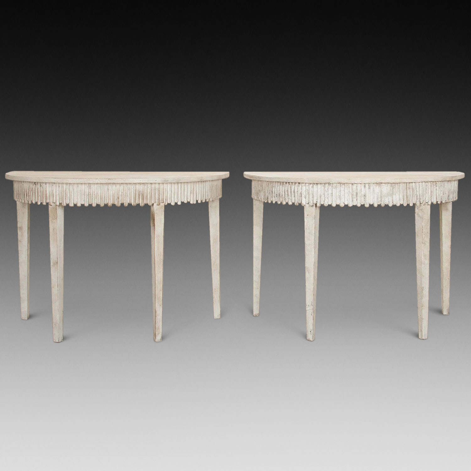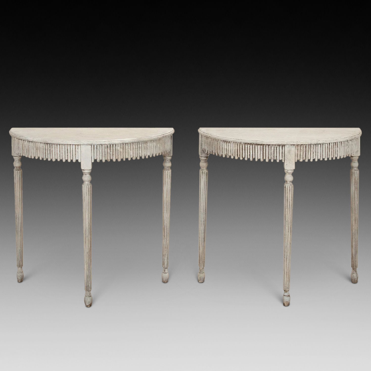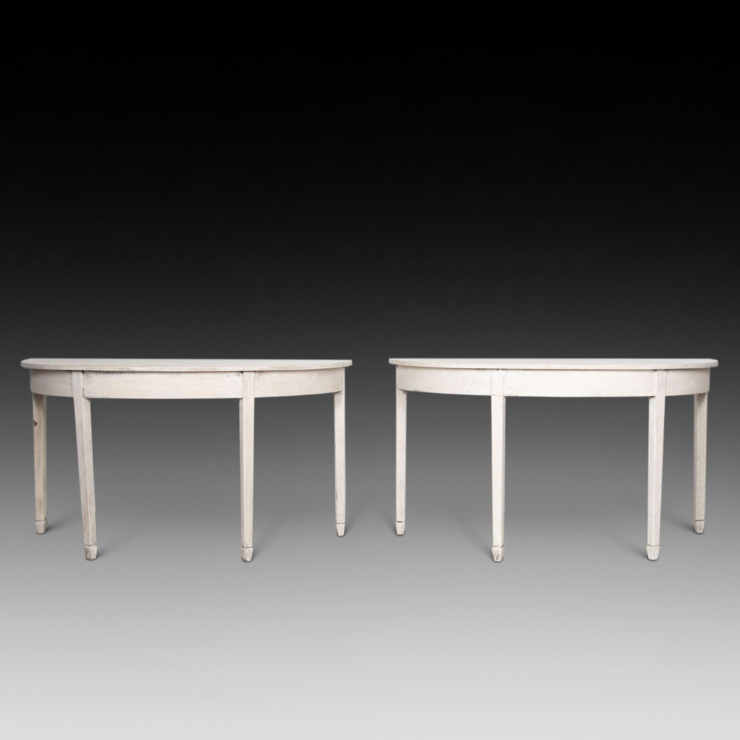 Pair of 20th Century English Painted D Shaped Console Tables (SOLD)