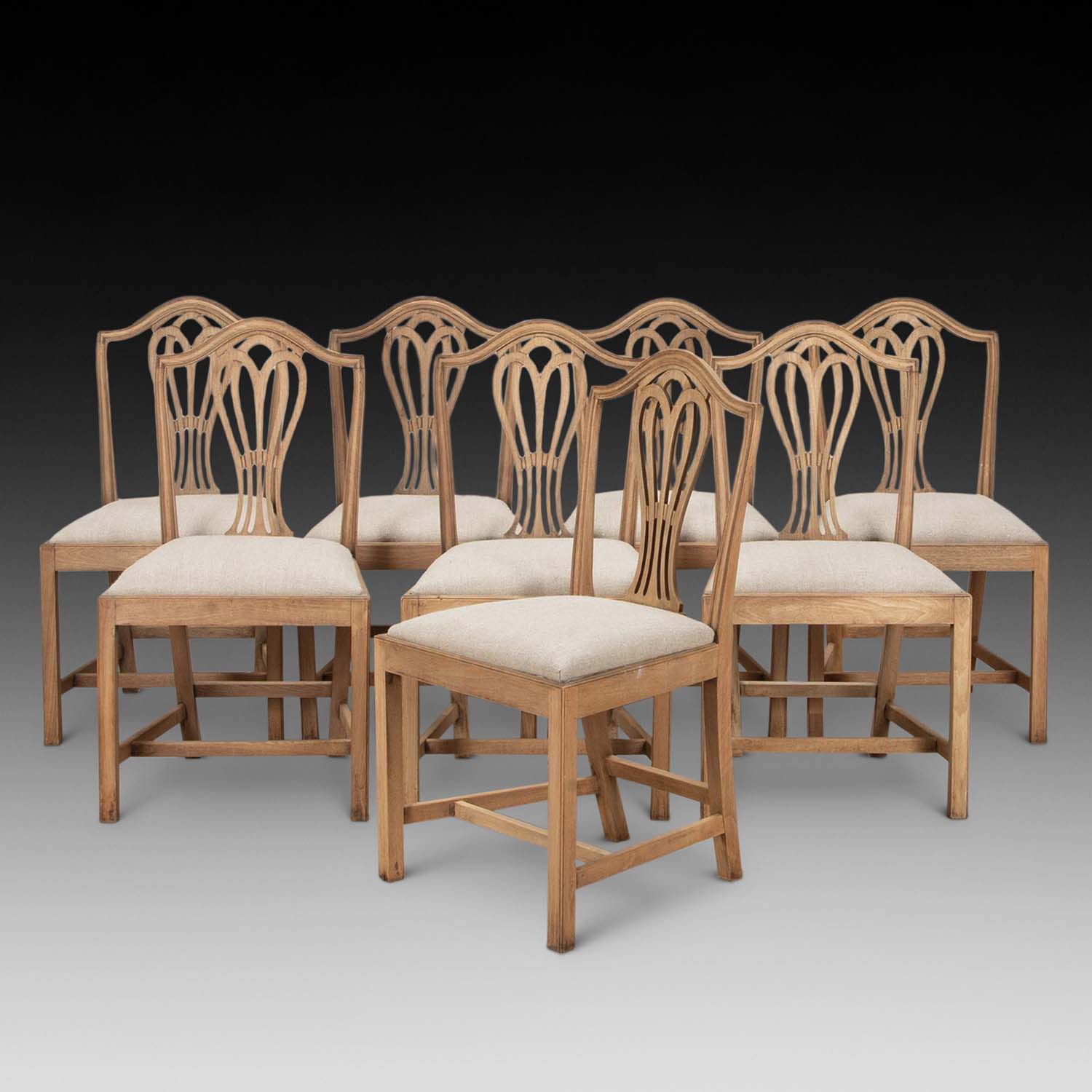 Set of Eight 18th Century Bleached Mahogany Dining Chairs (SOLD)