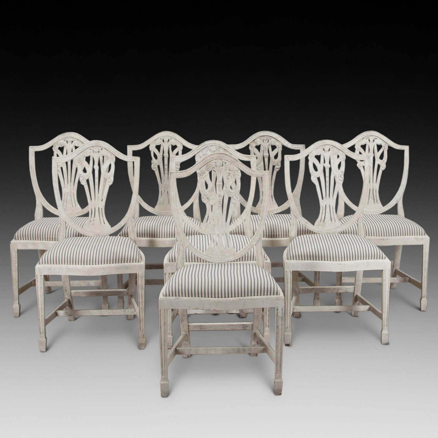Set of Eight 20th Century Gustavian Style Dining Chairs (SOLD)