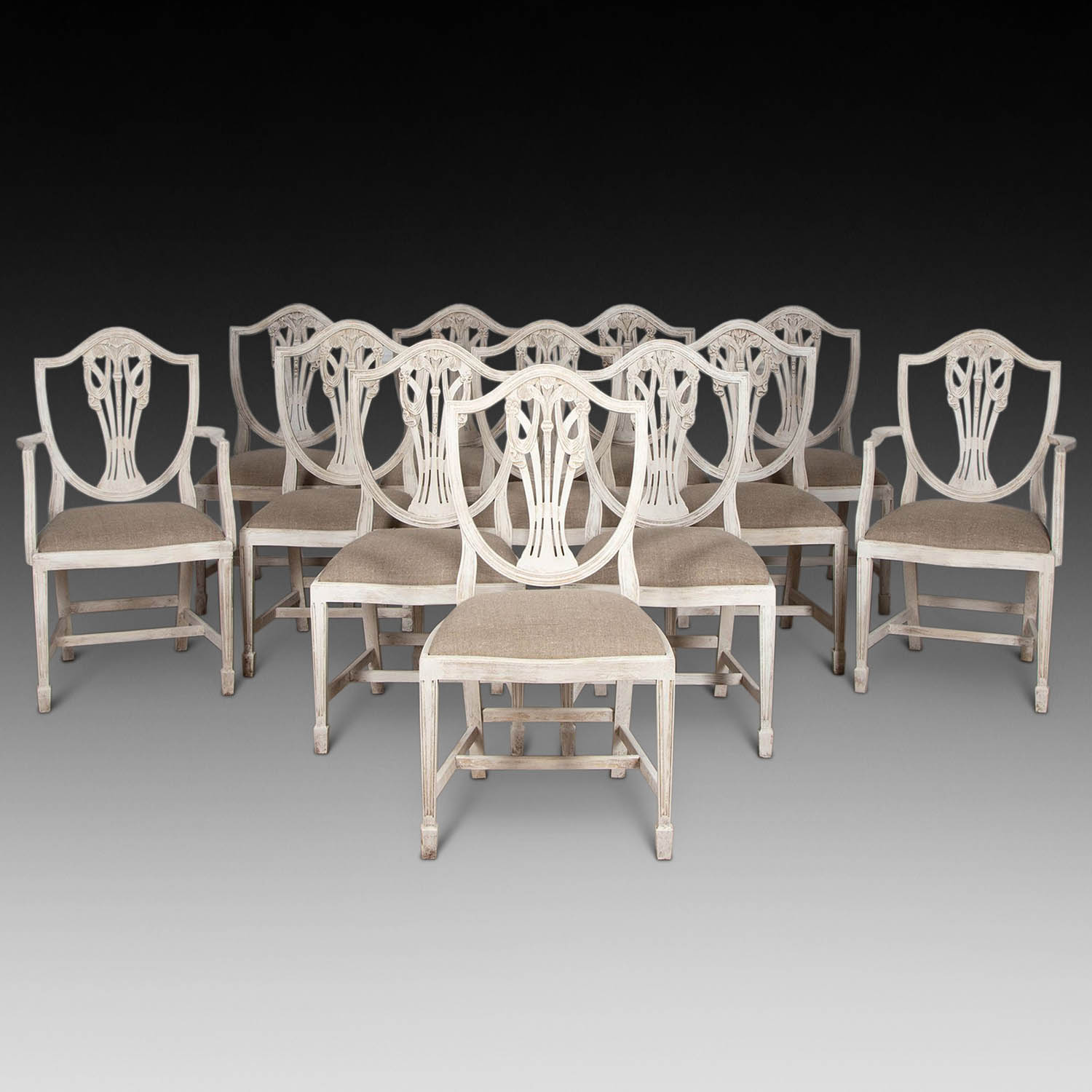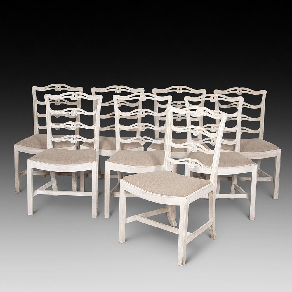 Set of Twelve Painted Gustavian Style Dining Chairs (SOLD)