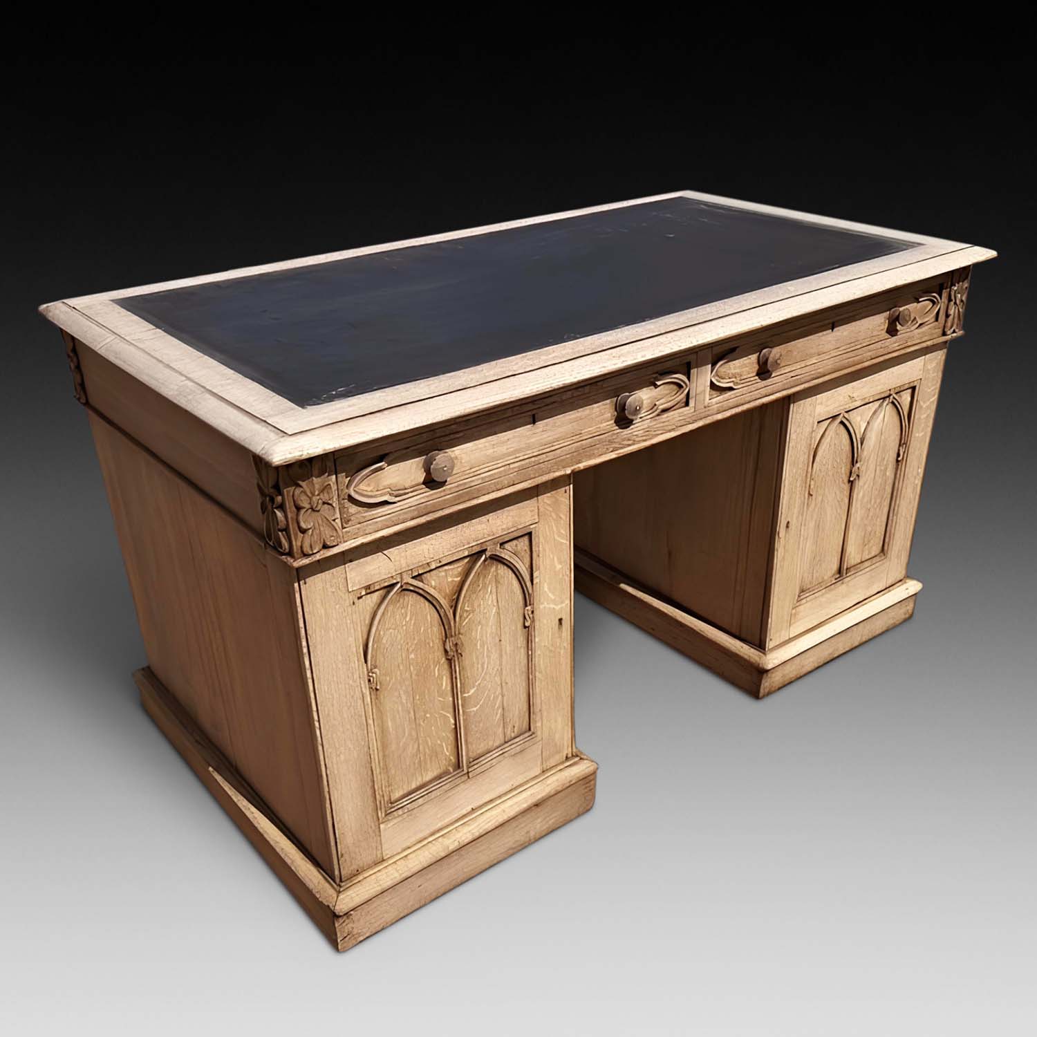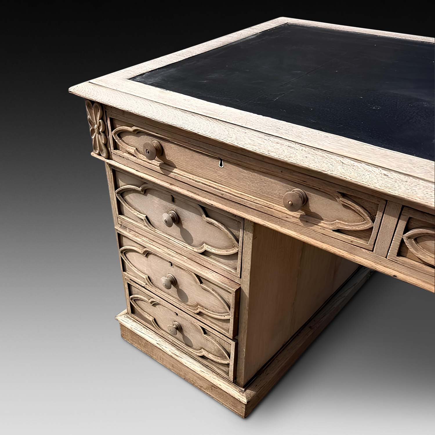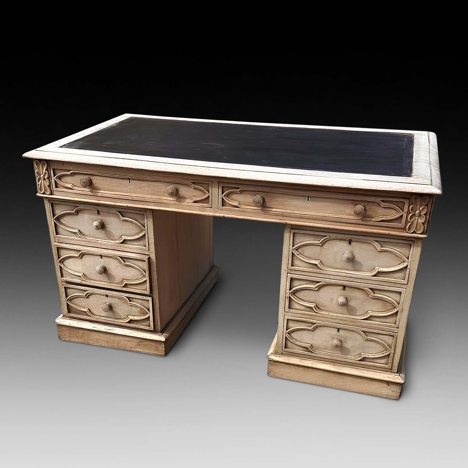 19th Century Bleached Oak Pedestal Desk