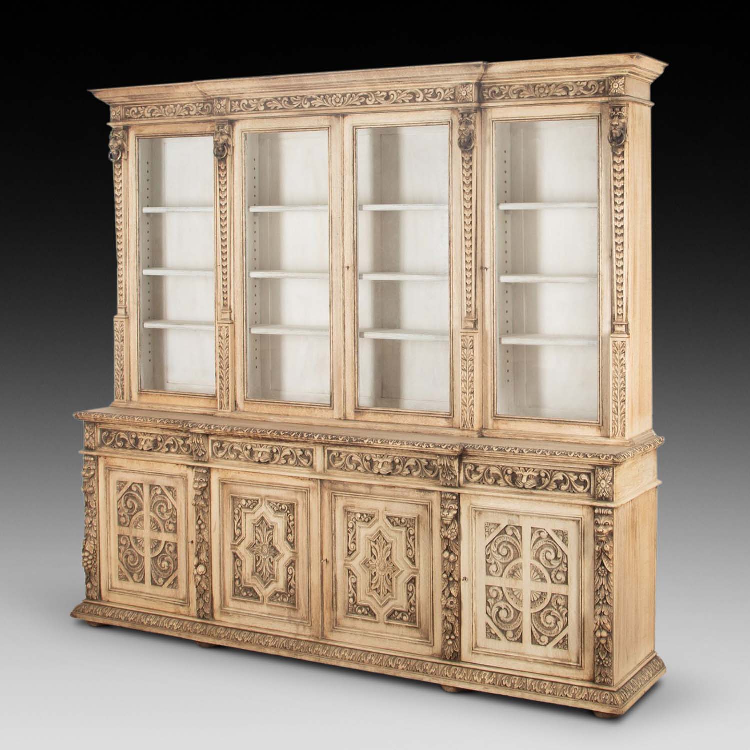 Below there is a hidden storage behind the four carved oak doors and drawers.