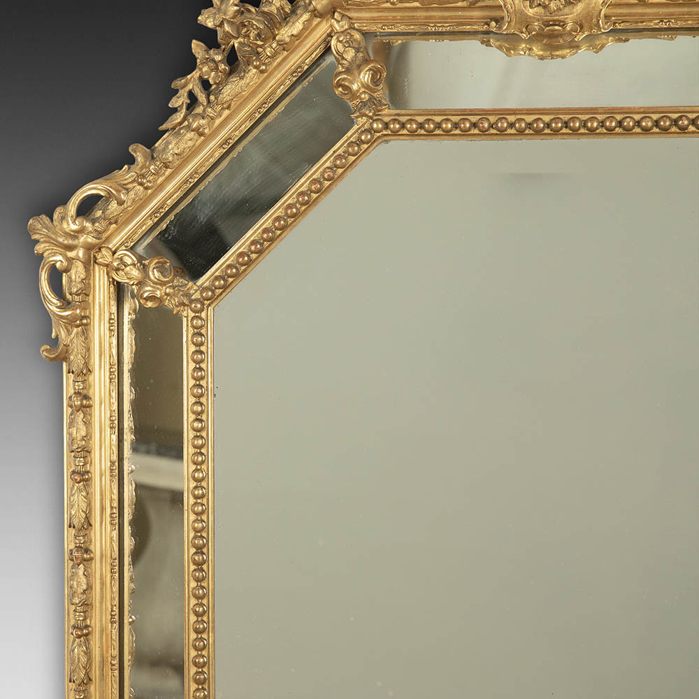 This stunning piece has a well decorated original gilt frame and has a quality bevelled mirror glass.