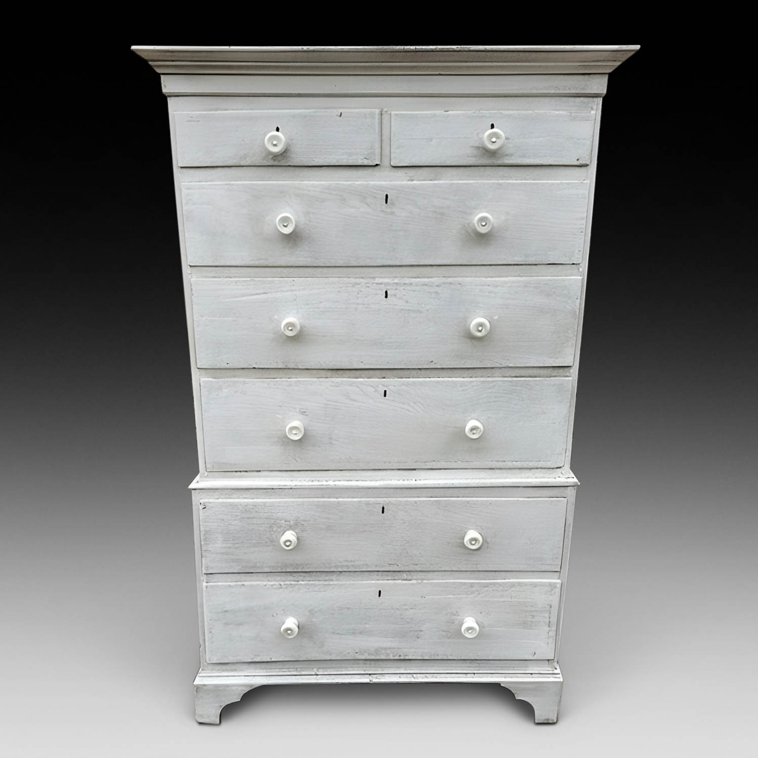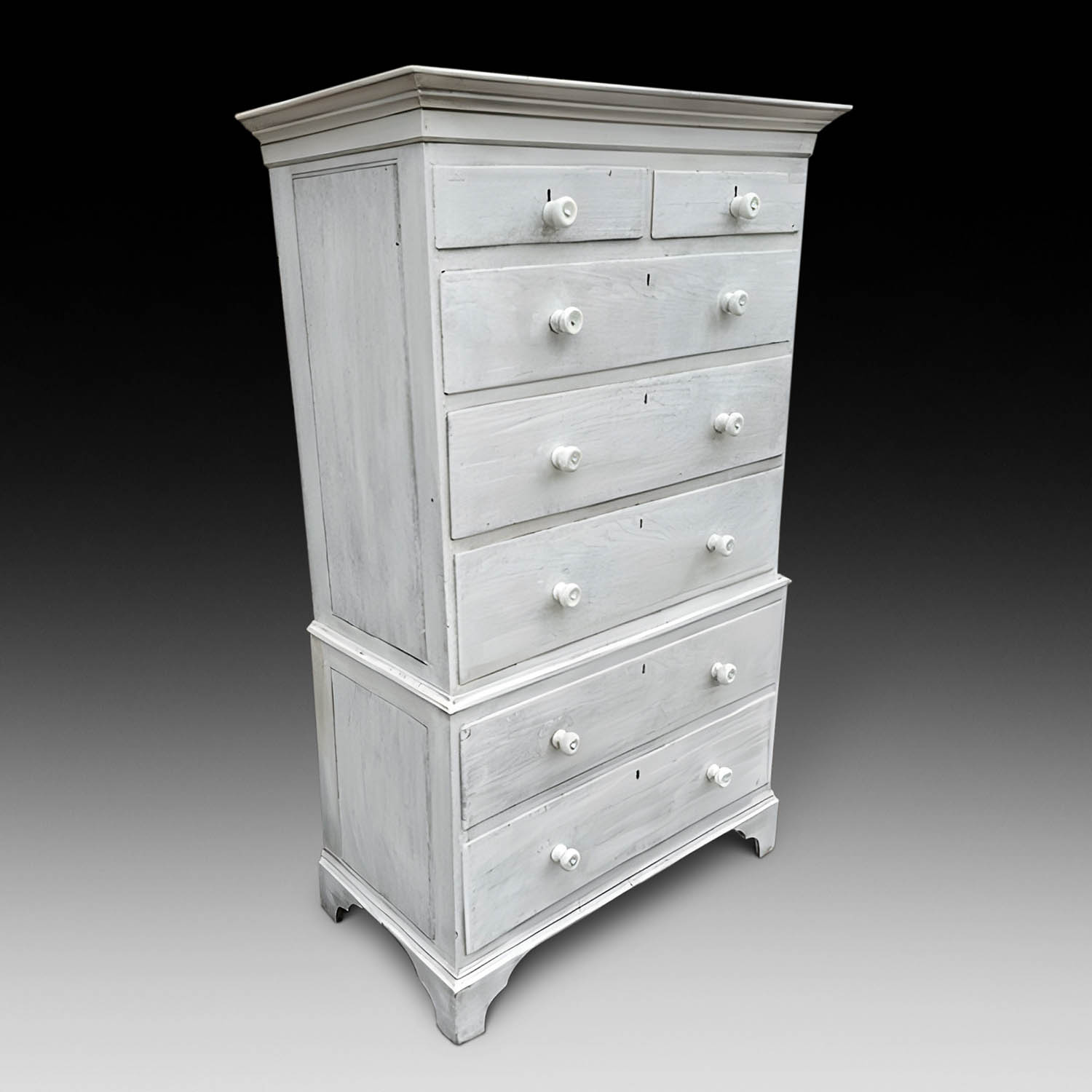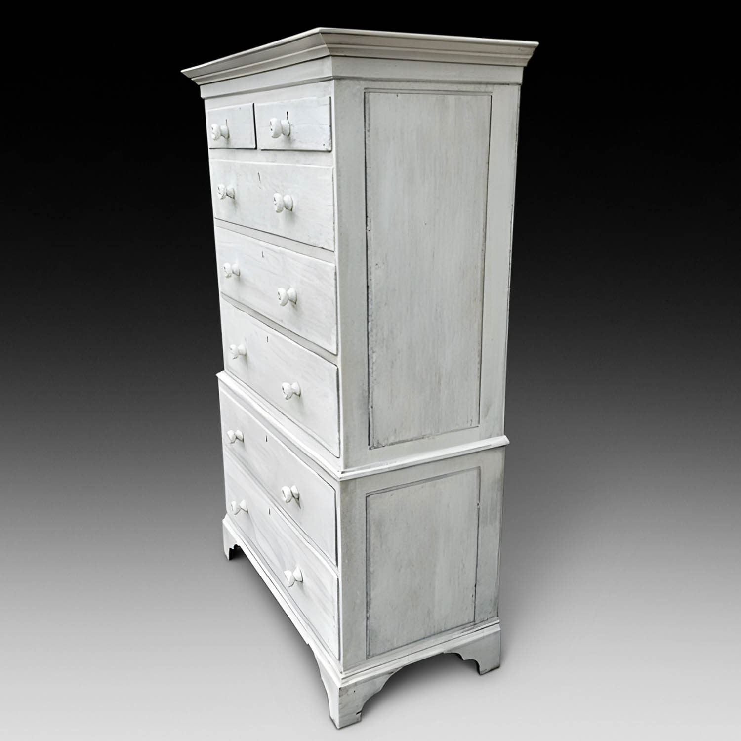 A lovely painted Chest on Chest of small proportions, this beautiful yet practical piece stands well and offers ample storage in the seven working drawers.