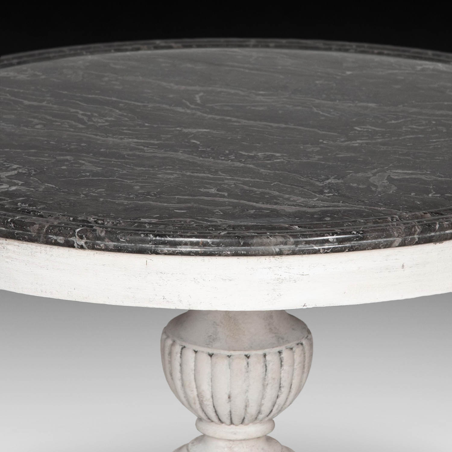 With its original dark marble top that sits on a well-decorated base that’s finished with a claw foot.