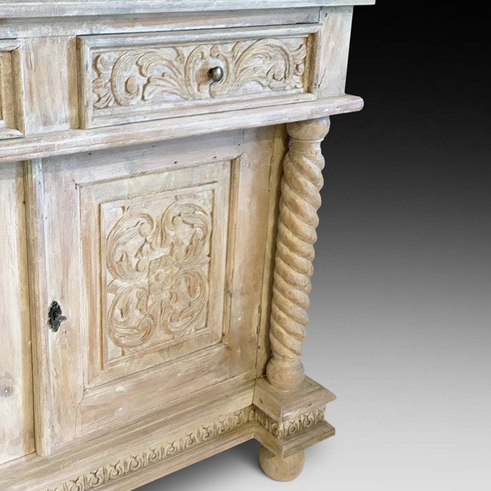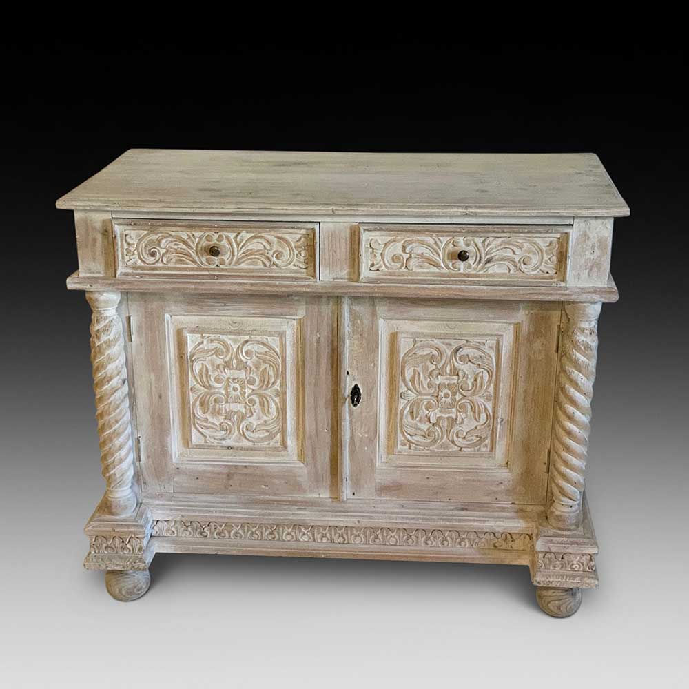 A Decorative Pair of Bleached/Washed Carved Pine Side Cabinets, ca. 1885-1910