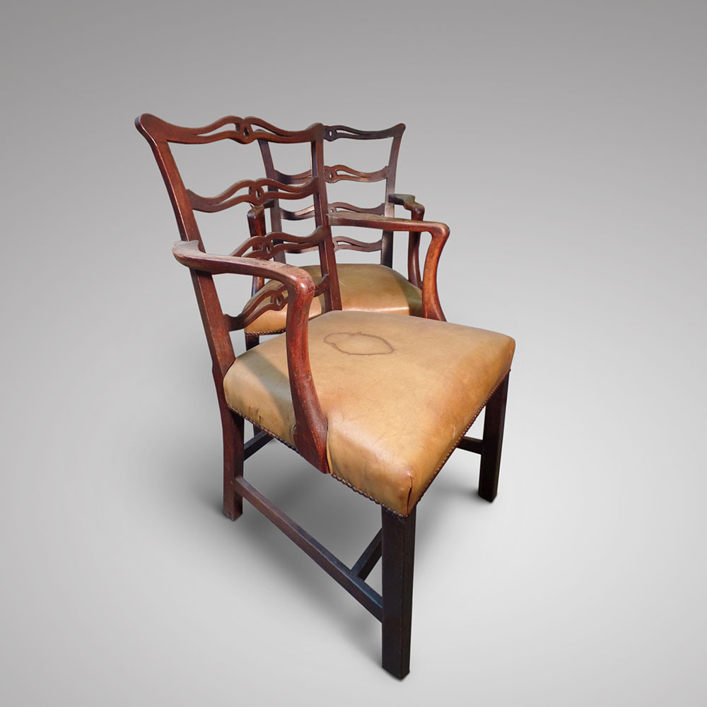 A Pair of Ladder Back Carver Dining Chairs, ca. 1700-1800