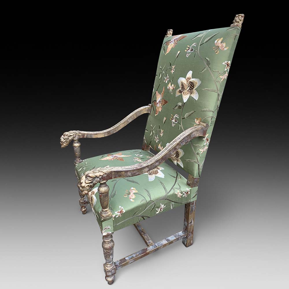 A Stunning Pair of Distressed Gilt Framed Armchairs, ca. 1830-50