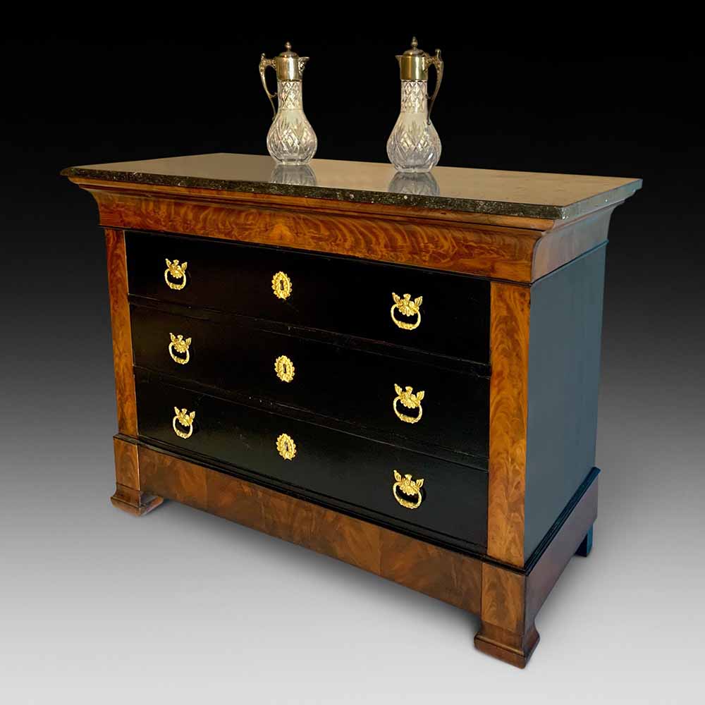 A Very Good Ebonised & Flame Mahogany Commode Chest Of Drawers, ca. 1840-60