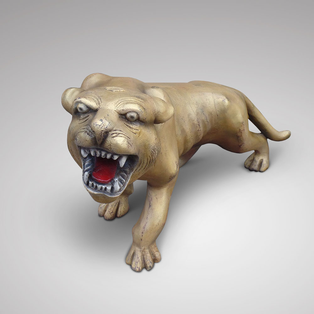 A Very Unusual Pair of Carved Wooden Tigers, ca. 1870-90
