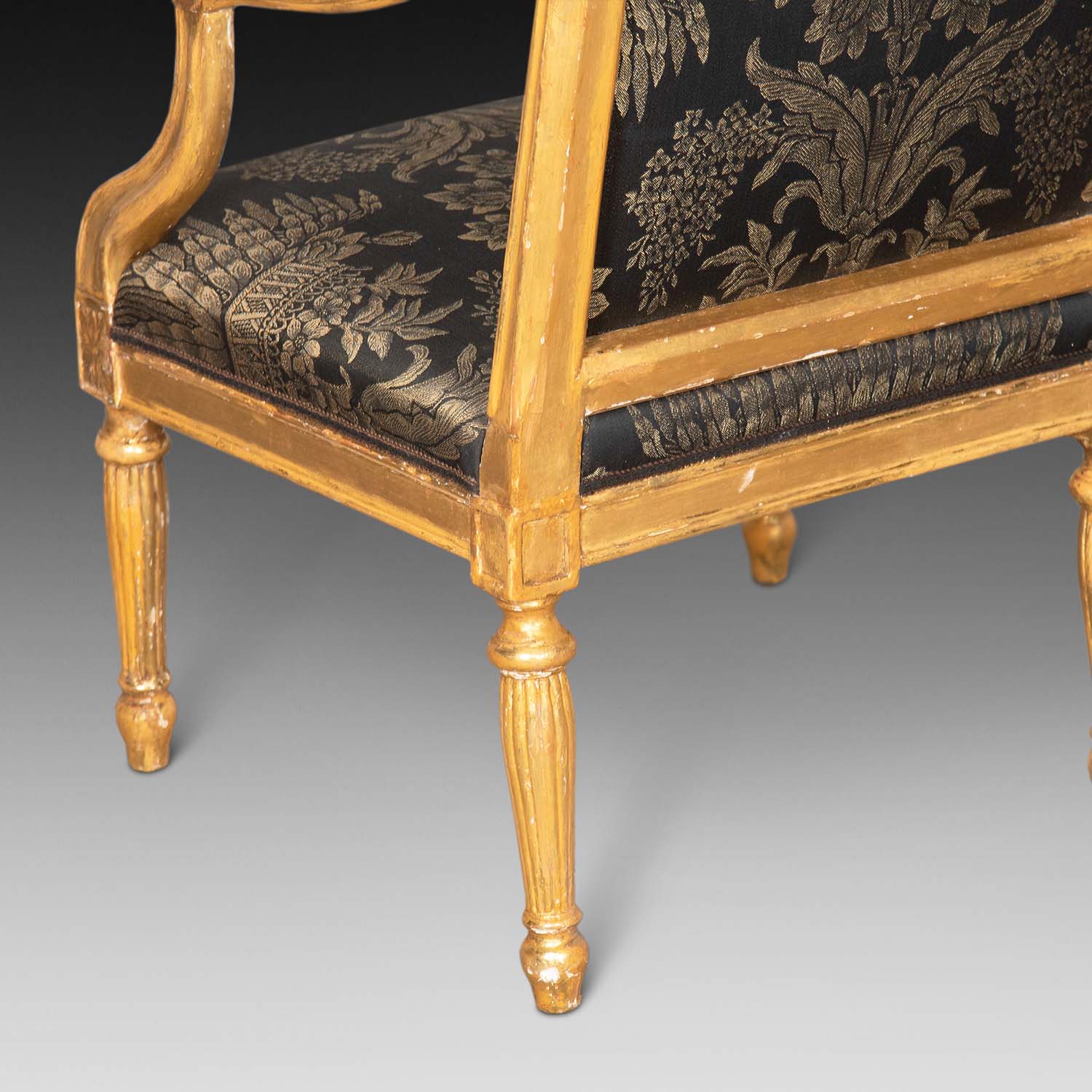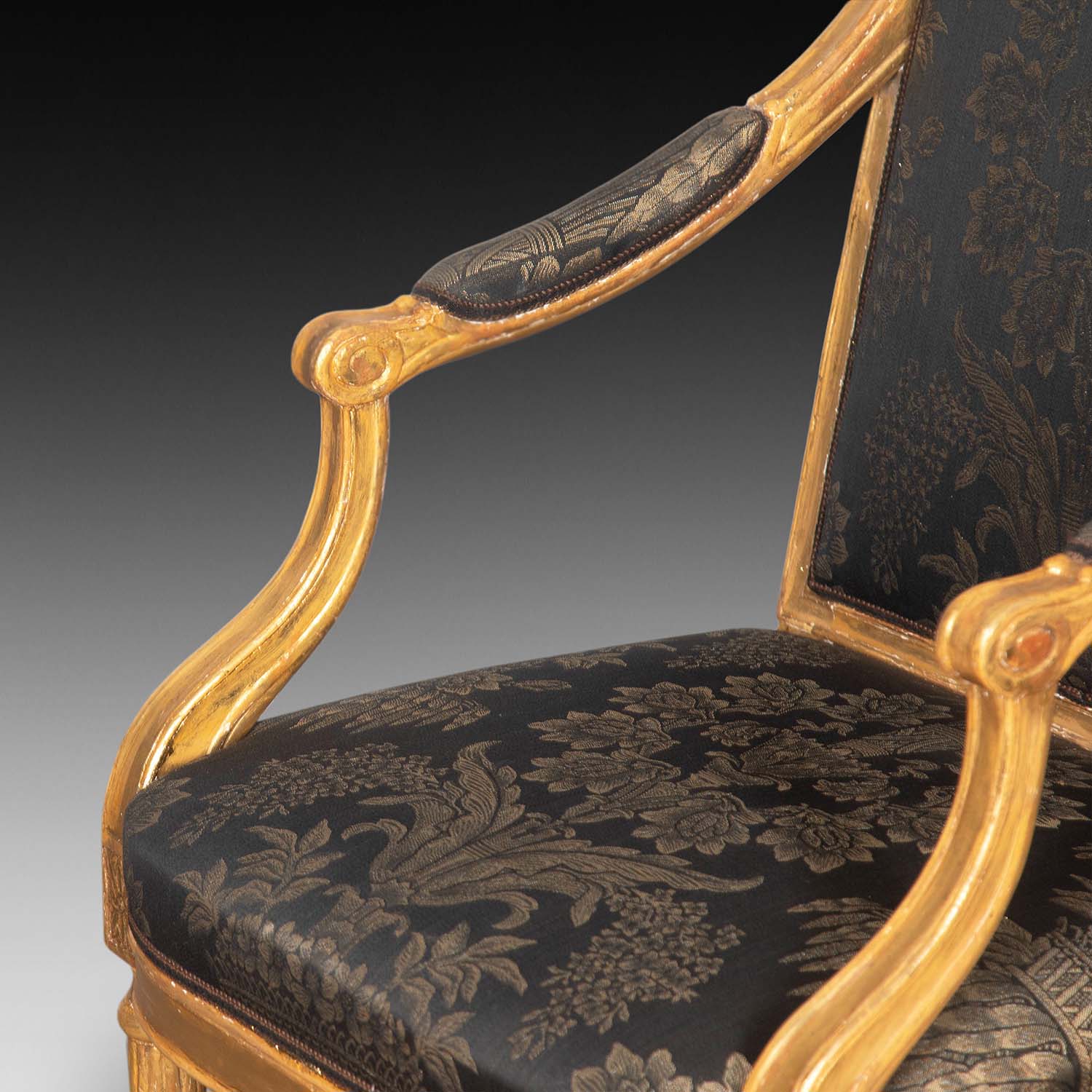 The back and seats are covered in a lovely slightly worn fabric that compliments the chairs and gives them a great country house look.