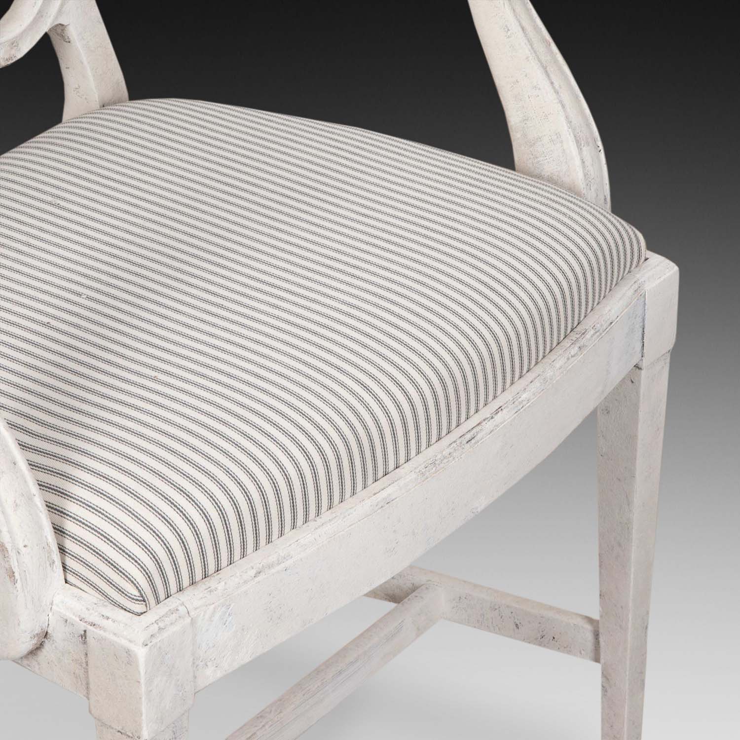 Consisting of six single and two carvers. The drop in seats are covered in a simple but elegant ticking fabric.