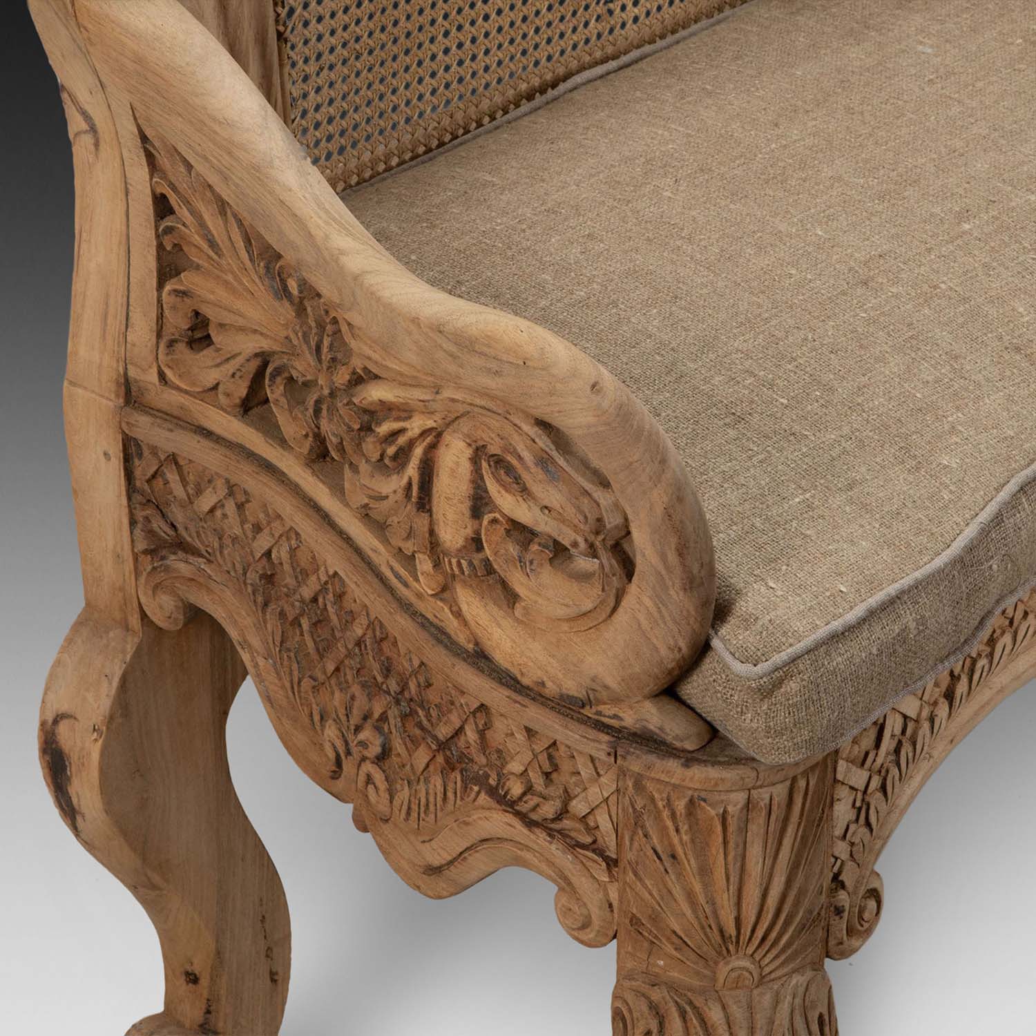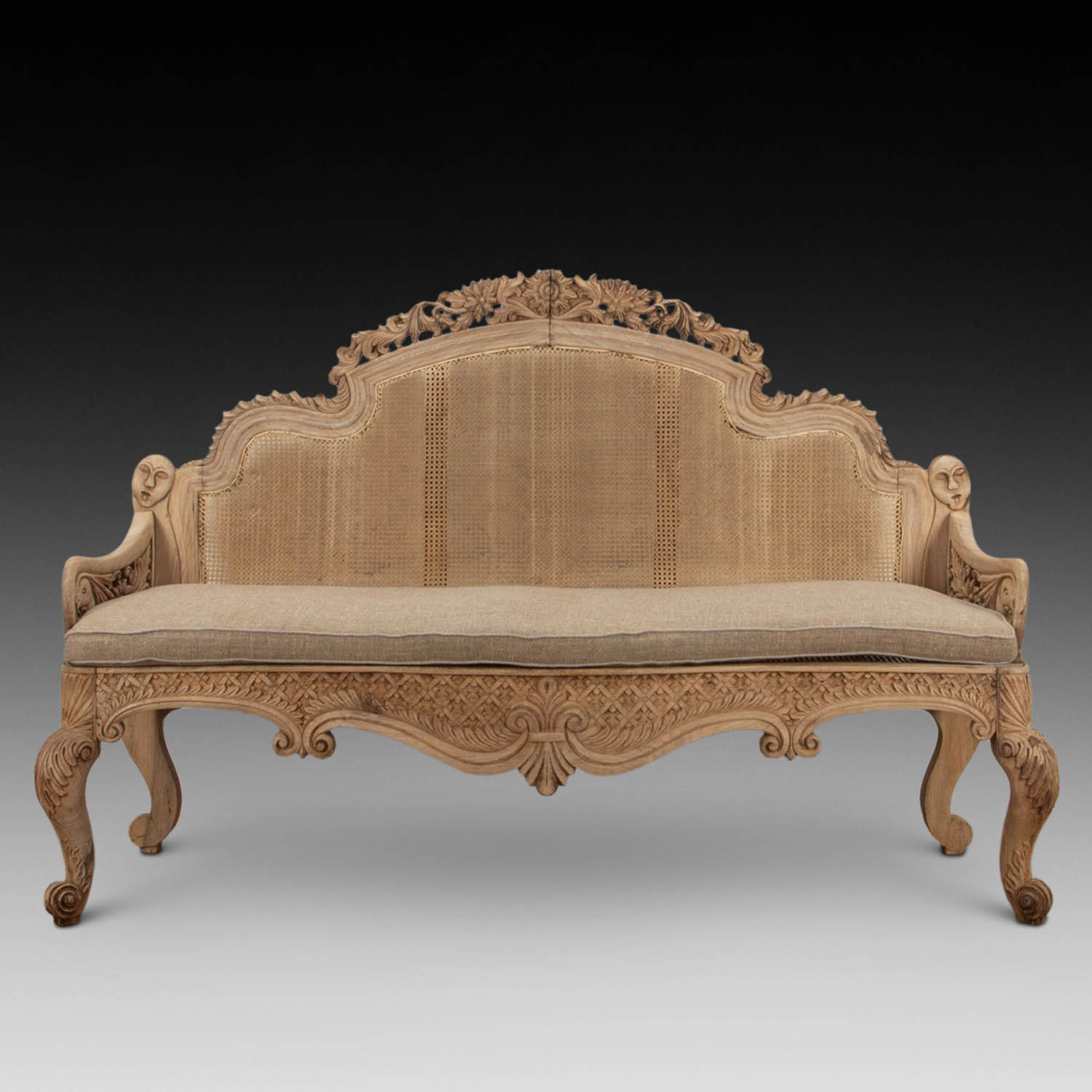 An impressive and highly decorative 19th Century Anglo-Indian, bleached rosewood settee.