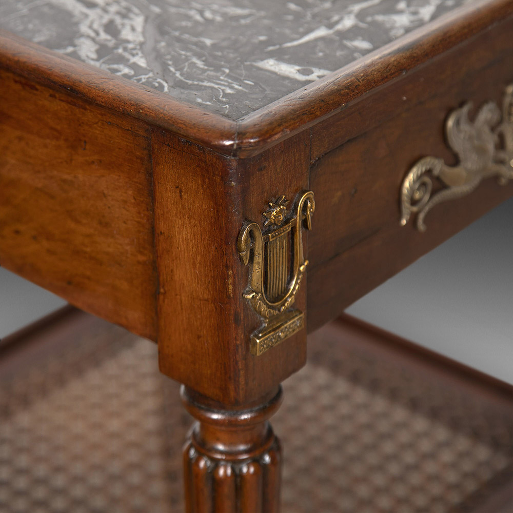There are signs of wear to the marble top in the form of a small crack in the corner, however, this does not detract from its overall charm!
