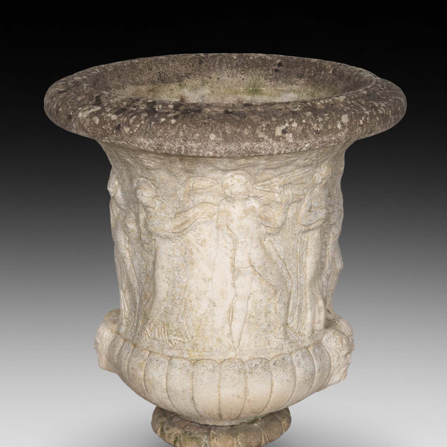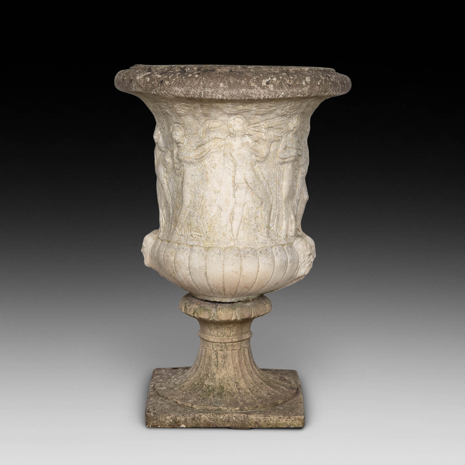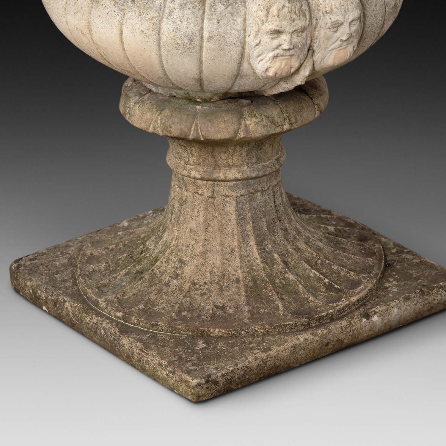 A removable and later fitted painted wood top sits inside the top of the urn so it can be used as a pedestal or a lamp table.