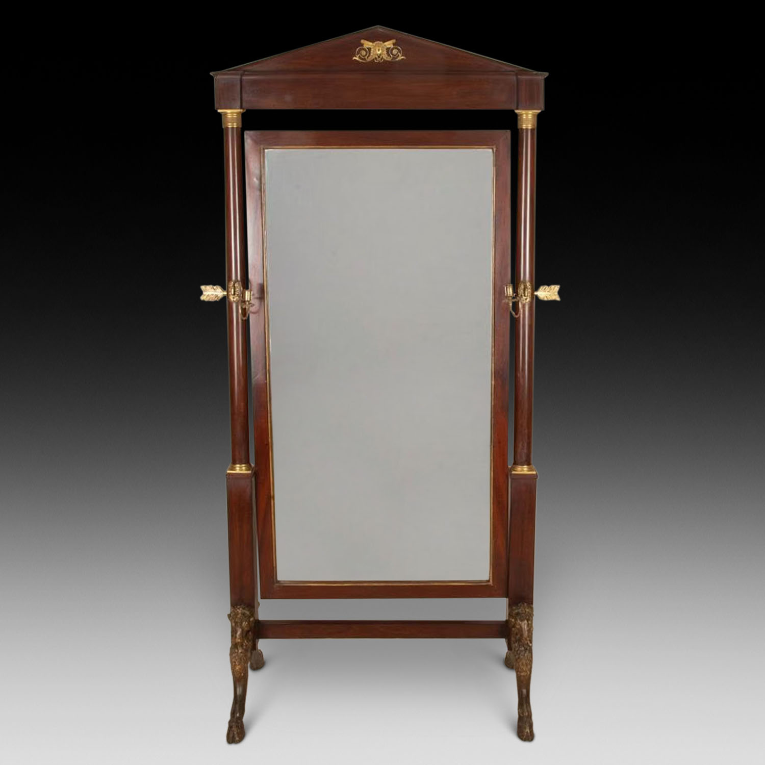A very impressive and good quality early 19th Century French Empire period cheval mirror.