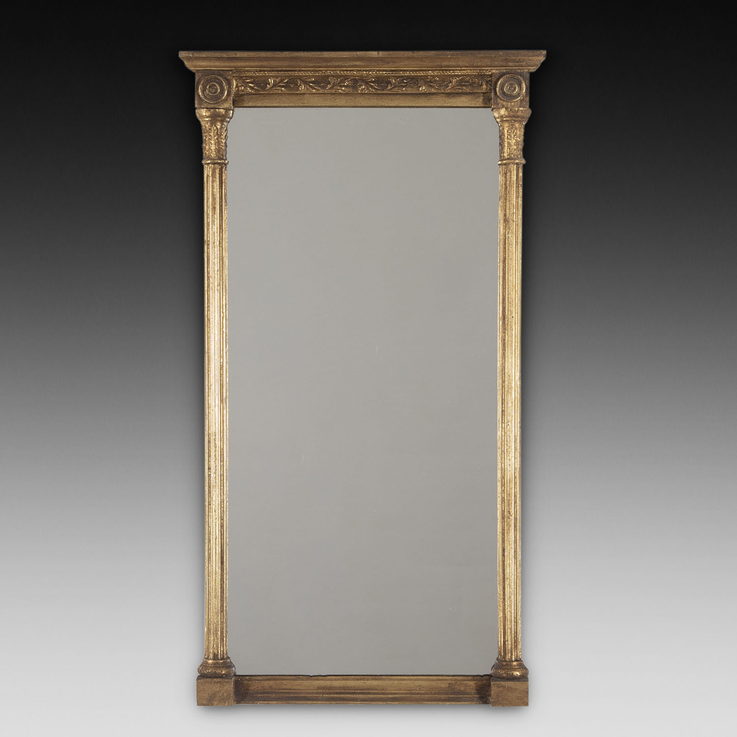 The elegant gilt frame has reeded columns and turned and carved decoration.