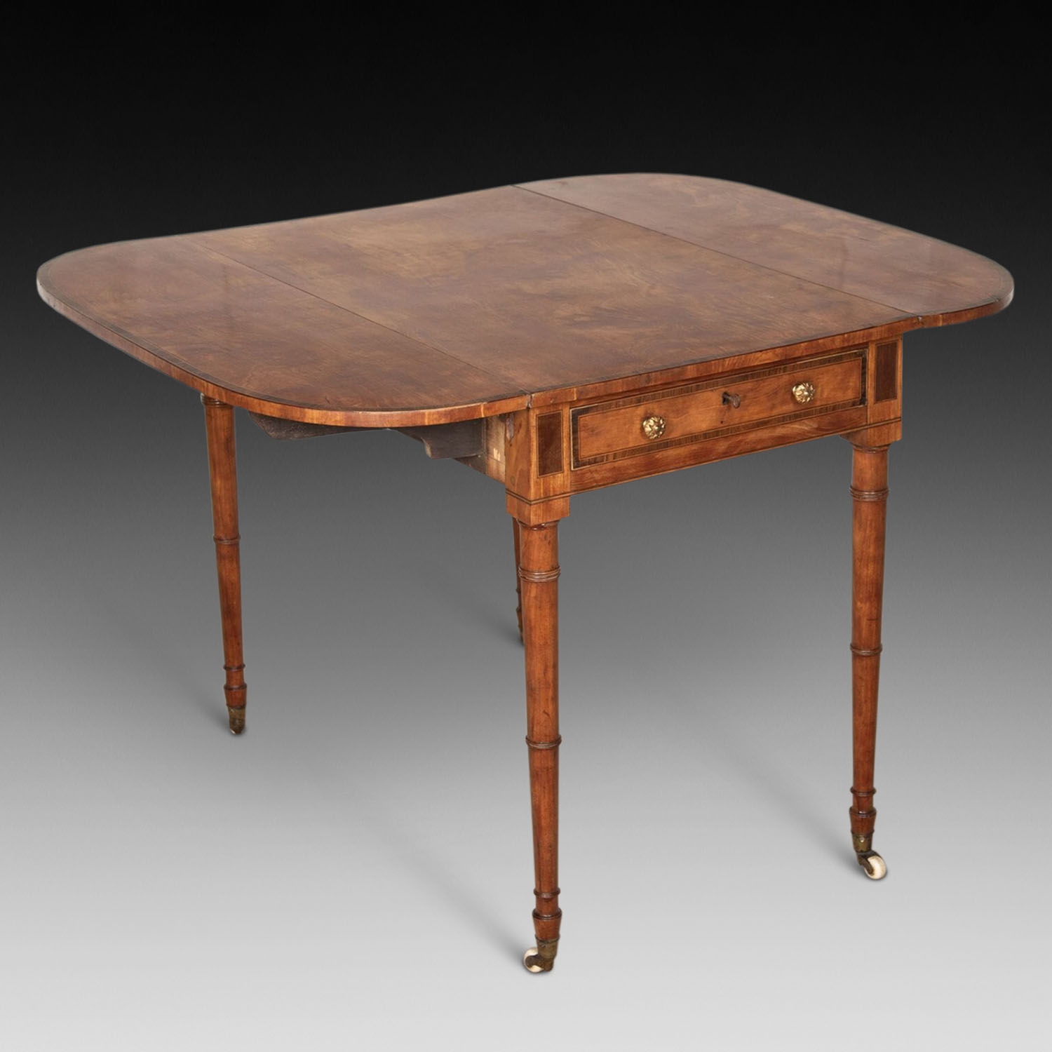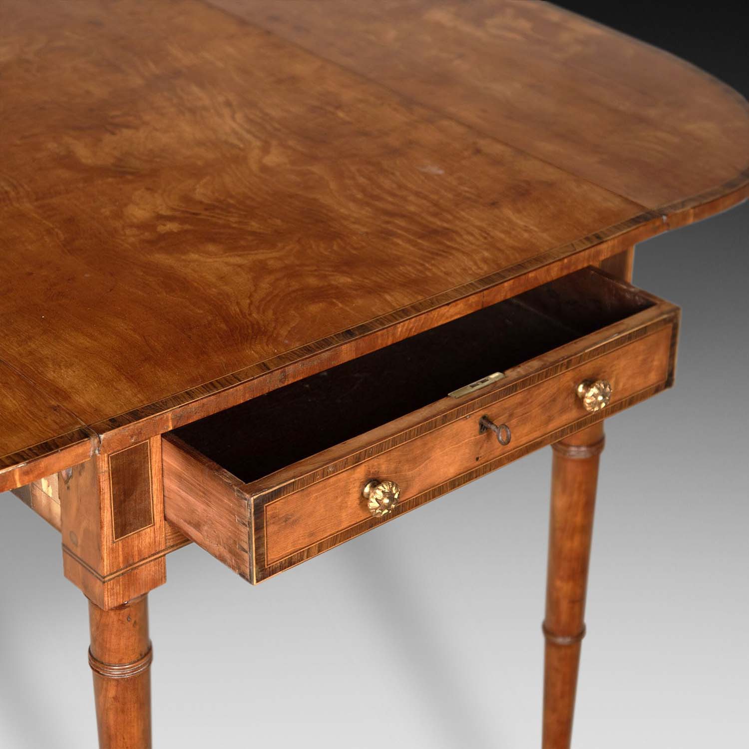 19th century fantastic and great example of an early quality piece of furniture. This Satinwood Pembroke Table has a great grain structure to the top, two working drawers to the front and back that retain their original gilt knobs.