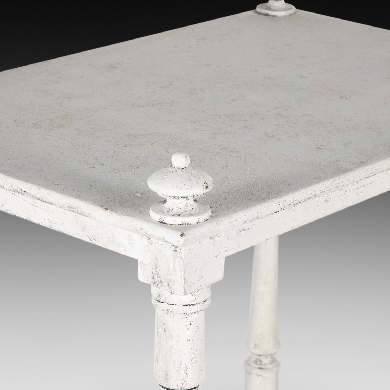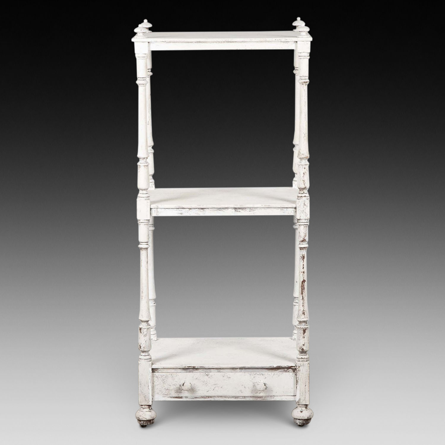 Featuring a display area of three shelves, a drawer at the base and a later painted finish.