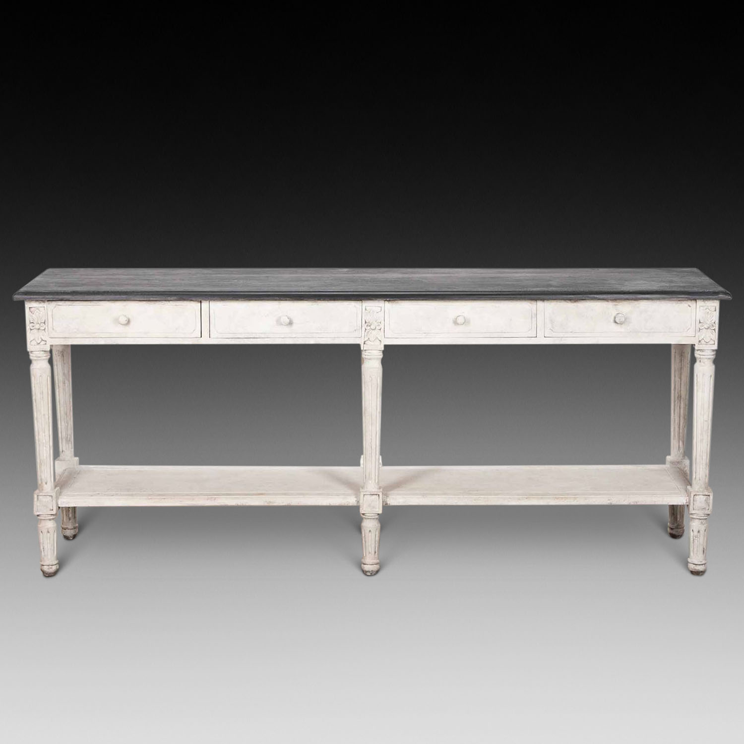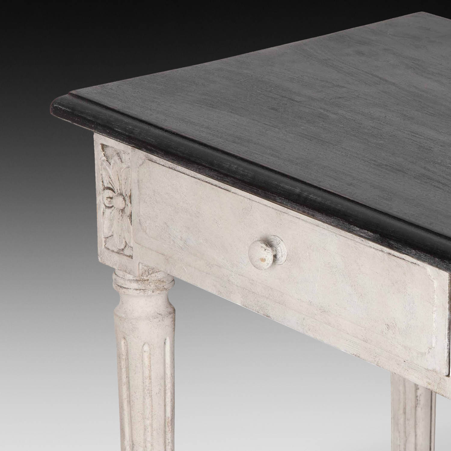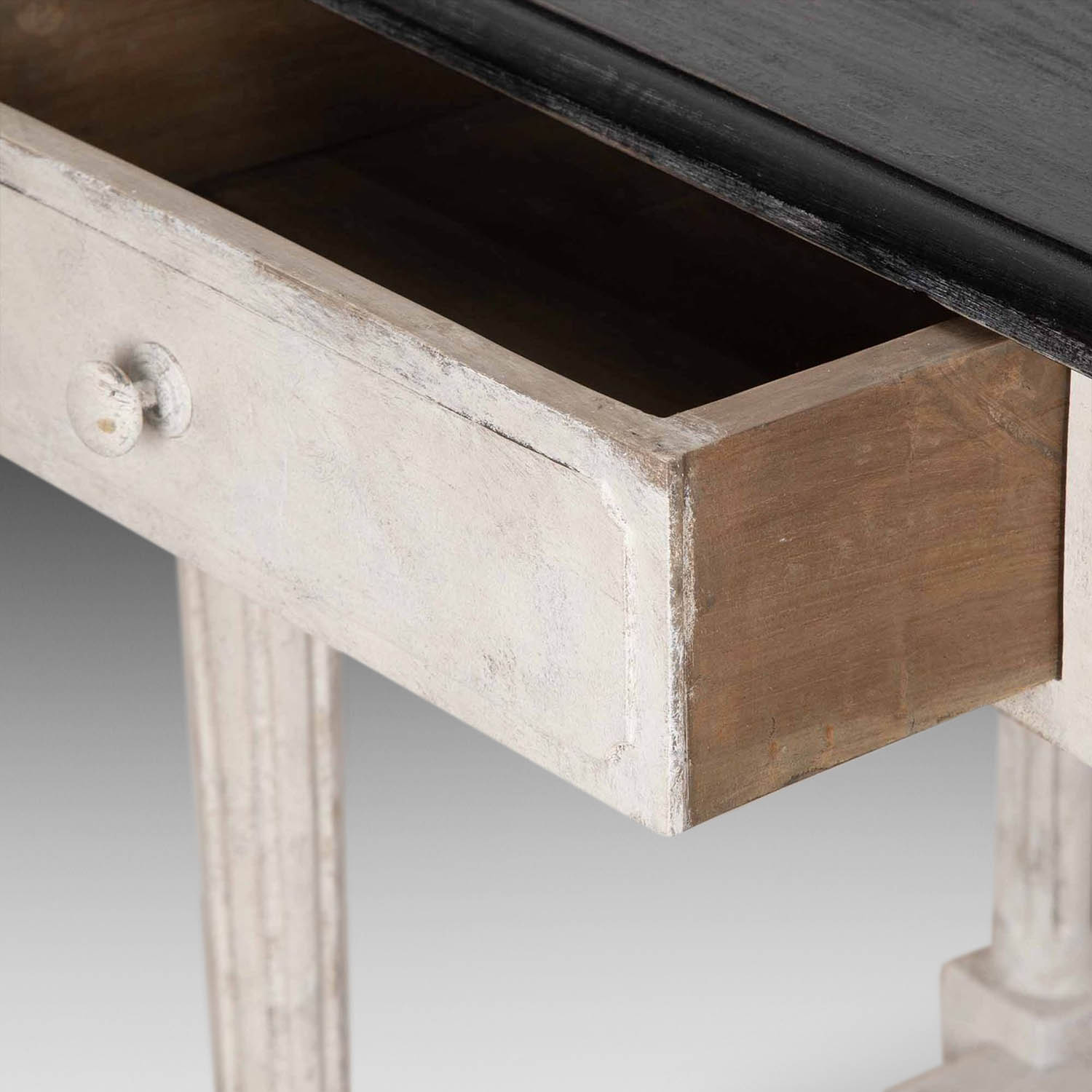 This piece stands well on it’s reeded legs and has a good decorative look. With later old white paint finish to the base section and an aged black paint finish to the top.