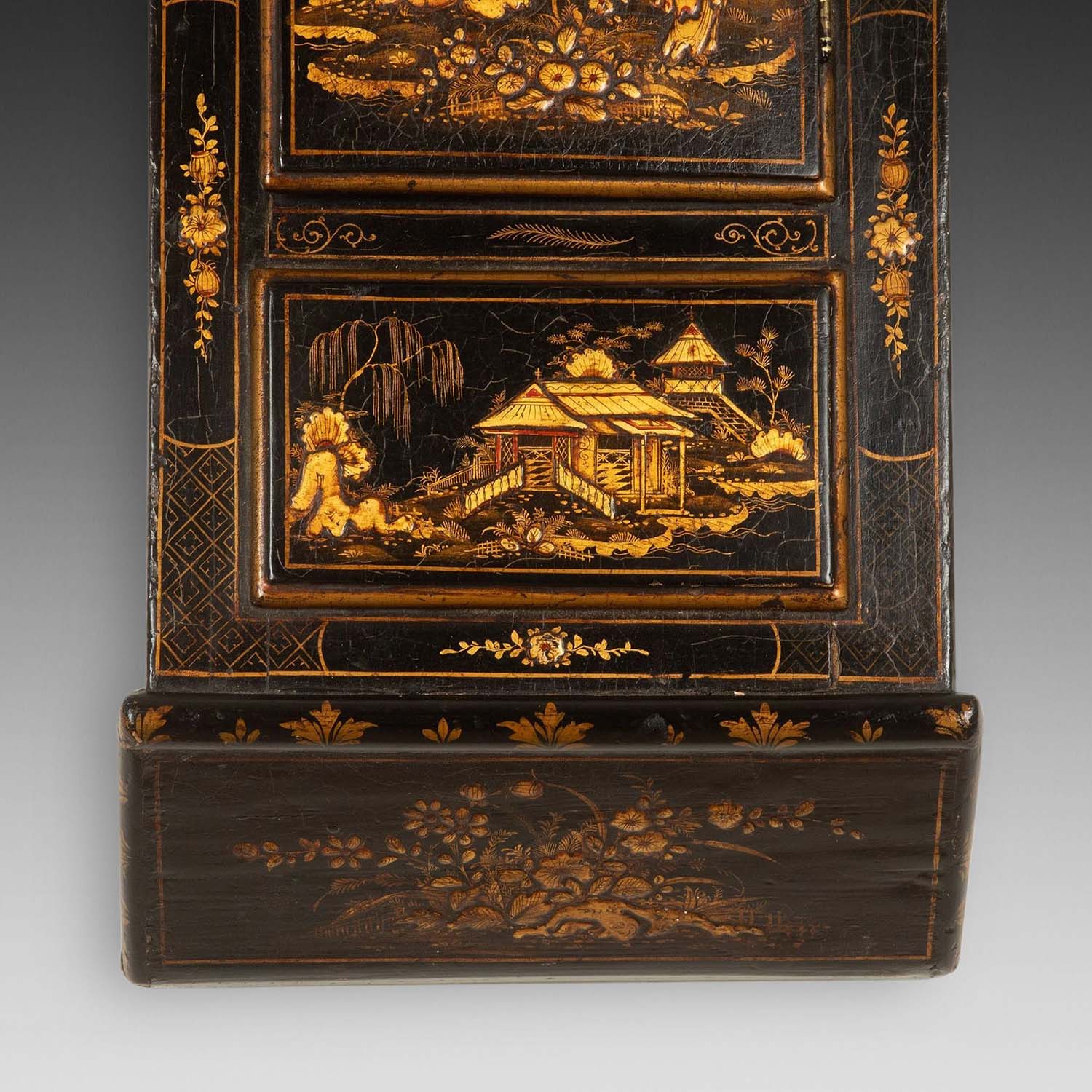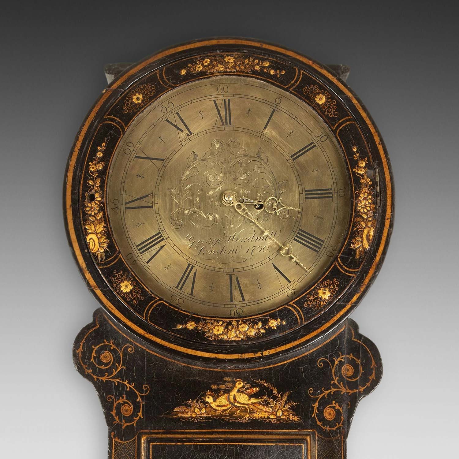The Chinoiserie decoration on this clock case is of excellent quality and the scale is impressive too. A good brass dial movement signed 'George Windmill', London, 1790.