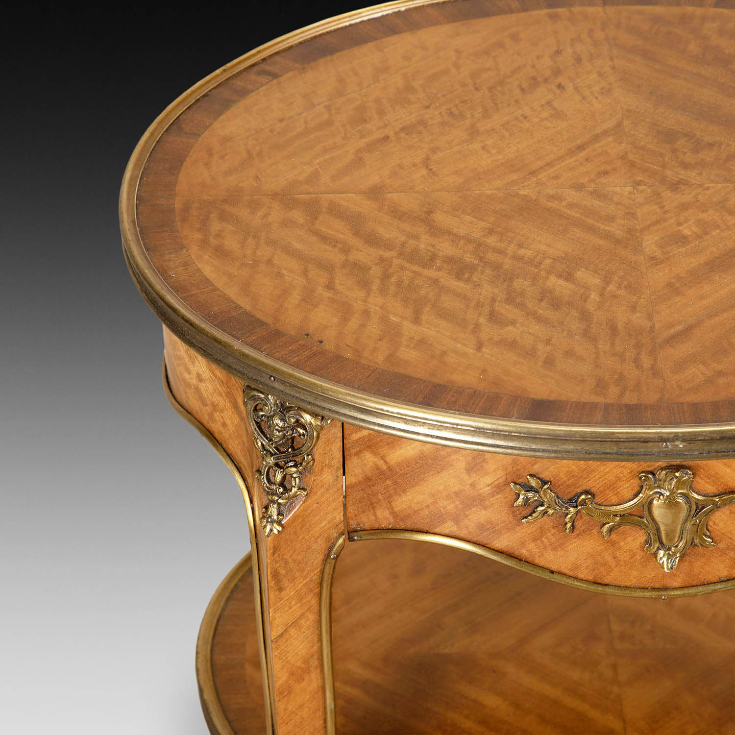 The tables stand well on their fine inlaid cabriole legs, offering storage on the two shelves and with additional hidden drawer. The tables are decorated with their original good quality brass mounts. A great find!